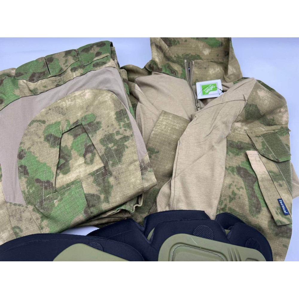 Тактический летний камуфляжный костюм с наколенниками и налокотниками является удачным вариантом для экипировки, так как имеет отличную защиту от травм коленных и локтевых суставов. Защитная система предохраняет от ударов и падений и в момент боевых действий.