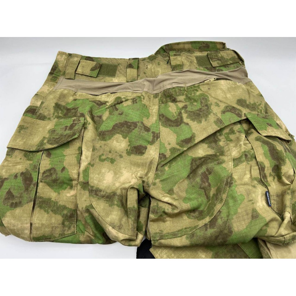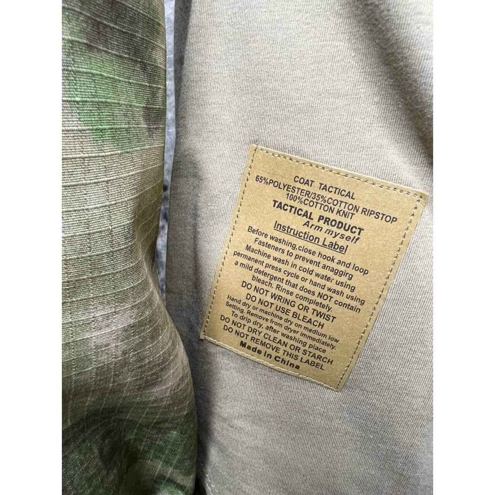 Рубаха удобного кроя, не стесняющего движений, изготовлена из 2-х типов тканей: износостойкой RipStop (воротник и рукава - 65% полиэстер, 35% хлопок). Камуфляжная рубаха имеет 2 удобных, накладных нарукавных кармана с местом под патч, съемные налокотники и регулируемые нарукавные манжеты на тактильных застежках Velcro. Брюки изготовлены из ткани RipStop (65% полиэстер, 35% хлопок). С помощью застежек на ленте (Velcro, липучках) можно отрегулировать размер талии, полноту штанин и ширину нижних манжет.