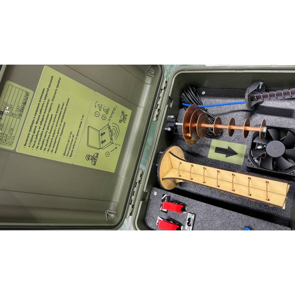 Подавитель БПЛА «Гроза 5.8» представляет собой направленное устройство радиоэлектронной борьбы, предназначенное для нейтрализации коммерческих дронов таких производителей, как DJI и Autel и др.. Он выполнен в виде герметичного и ударопрочного кейса.