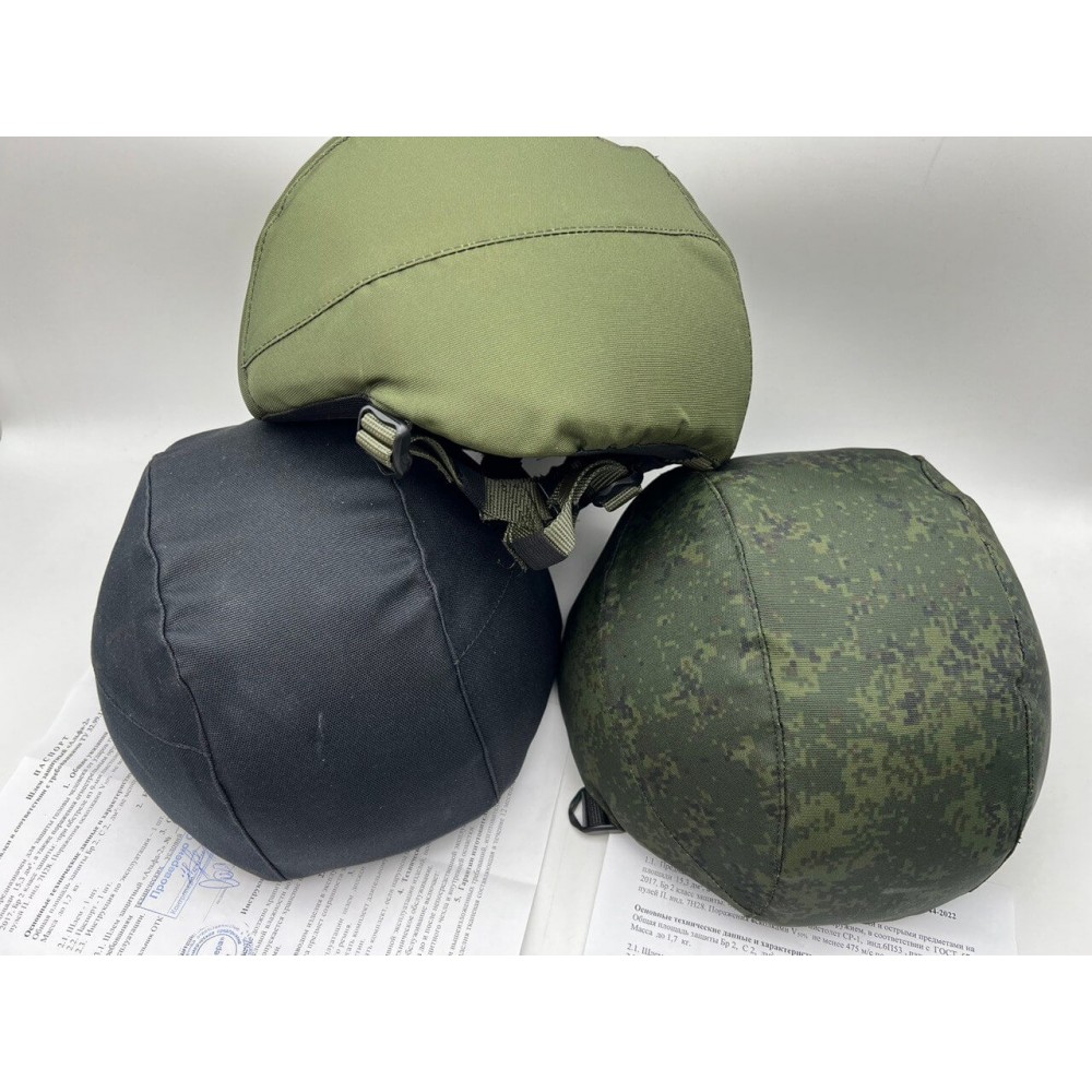 Конструкционно имеет 4 пластины. И ВСЕ 4 из 4 пластин - бронесталь, защищающая по Бр2 классу. Бронешлем обеспечивает круговую защиту головы. Вес от 1,6 кг. Докомплектуется рейлингами под заказ, за доп. плату.